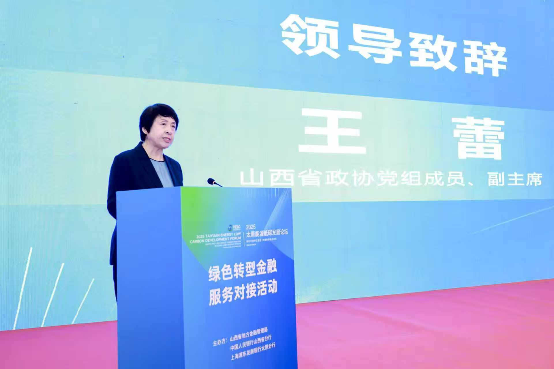 2025年9月28日,山西省地方金融管理局联合中国人民银行山西省分行、浦发银行太原分行共同举办“2025年太原能源低碳发展论坛绿色转型金融服务对接活动”。山西省政协党组成员、副主席王蕾出席活动并致辞。王蕾副主席强调,各金融机构要当好绿色转型金融产品和服务的“提供者”,企业要成为绿色转型金融的“用益者”,地方政府和金融监管部门要做好绿色转型金融实践的“推动者”,凝心聚力,共同努力,将绿色转型金融这粒“种子”播种在山西这片“沃土”之上,汇聚金融活水,共筑绿色未来。
